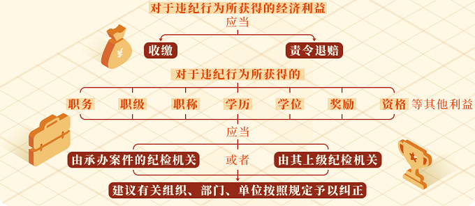 对于违纪行为所获得的职务、职级、职称、学历、学位、奖励、资格等其他利益,应当由承办案件的纪检机关或者由其上级纪检机关建议有关组织、部门、单位按照规定予以纠正。