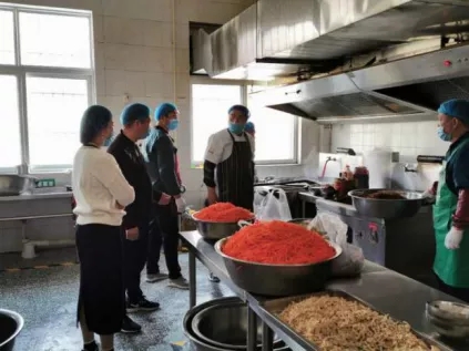 检查现场,督导组向学校食堂负责人详细了解疫情期间工作情况以及开学后师生用餐准备情况,实地察看了学校设立的体温检测点、师生进出口通道、等候间距等疫情防控措施落实情况和师生落实分批、分散、分座就餐情况。