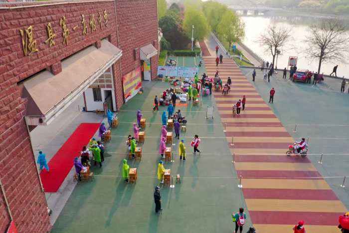 “4条体温检测通道上,排队的学生前后间隔1.5米,经过体温测量后,同学们依次有序入校。”这是焦作市温县一中4月7日高三学生开学的场景。