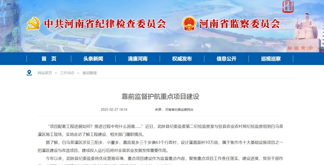 今年以来,武陟县纪委监委将优化营商环境、重点项目建设作为监督重点内容,聚焦重点项目工作责任落实、建设进度、党员干部作风、亲清政商关系等6个方面进行全流程监督,确保项目廉洁高效、有序推进。
