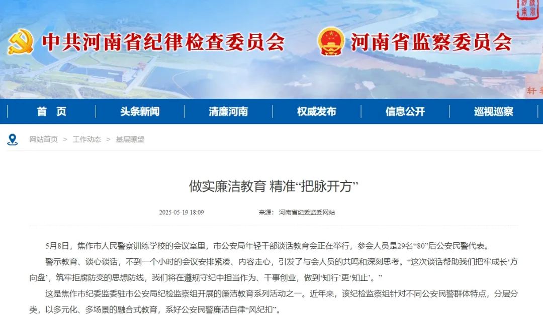 这是焦作市纪委监委驻市公安局纪检监察组开展的廉洁教育系列活动之一。近年来,该纪检监察组针对不同公安民警群体特点,分层分类,以多元化、多场景的融合式教育,系好公安民警廉洁自律“风纪扣”。