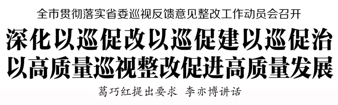葛巧红强调,高质量完成省委巡视反馈意见整改,是当前我市一项重要的政治任务。一要高度重视,切实扛牢巡视整改政治责任。坚定以习近平新时代中国特色社会主义思想为指导,深入学习贯彻习近平总书记关于巡视工作的重要论述和党中央决策部署,认真贯彻落实省委书记楼阳生在听取省委第四轮巡视情况汇报时的讲话精神,从坚定拥护“两个确立”、坚决做到“两个维护”的政治高度出发,进一步统一思想认识、提高政治站位、强化政治担当,全力以赴抓好省委巡视反馈意见整改落实,坚定不移推进全面从严治党向纵深发展。
