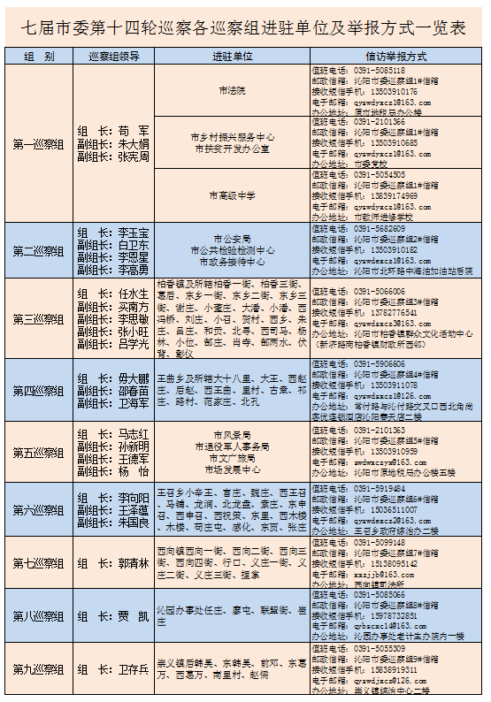 巡察期间,各巡察组均开通举报电话、接收短信手机、电子邮箱。