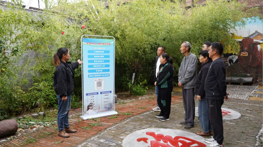 该区中星街道李贵作村两委干部正在向群众介绍“码上缴”使用流程。(张杰 摄)