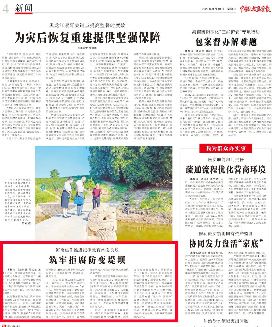 9月10日,《中国纪检监察报》四版刊发消息《筑牢拒腐防变堤坝》,介绍我市常态长效推进纪律教育的经验做法。现将全文转发,供大家学习借鉴。