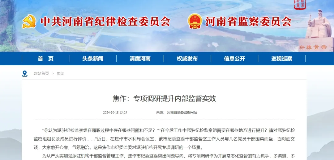 为从严从实加强派驻机构干部监督管理工作,焦作市纪委监委突出问题导向,将专项调研作为开展常态化监督的有力抓手,多渠道、多方位了解派驻机构干部的工作状态、作风纪律等情况,进一步督促推动履行监督责任。