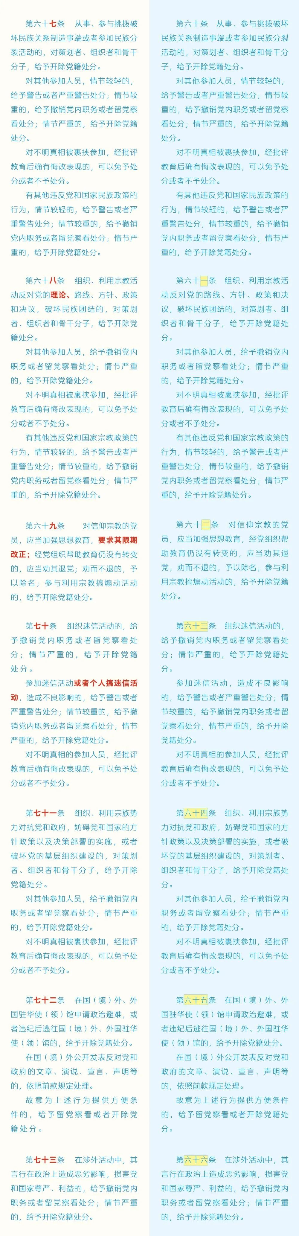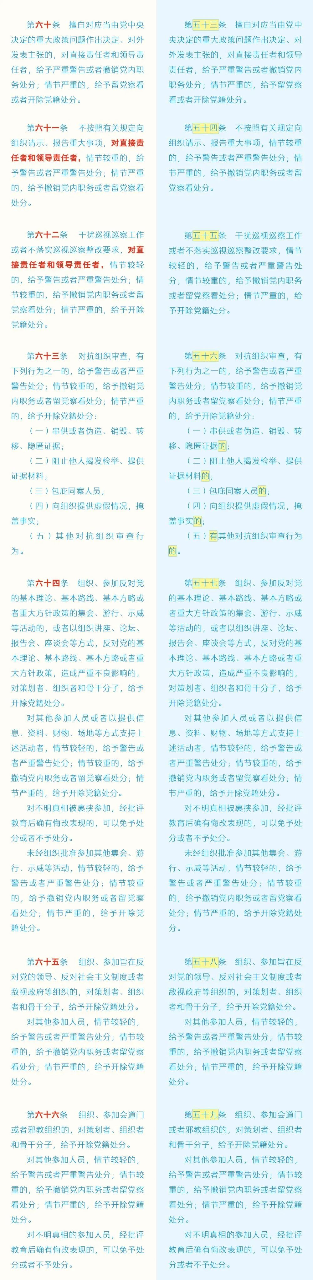 《中国共产党纪律处分条例》修订条文对照表(二)