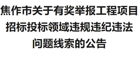 焦作市关于有奖举报工程项目招标投标领域违规违纪违法问题线索的公告