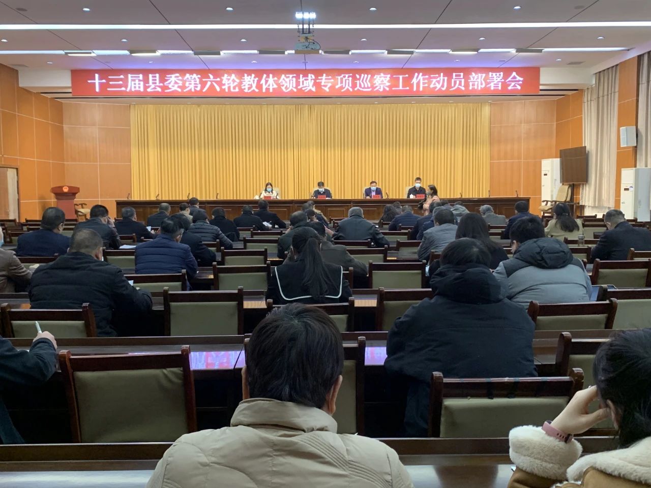 十三届武陟县委第六轮教体领域专项巡察工作动员部署会于3月4日在县委后四楼报告厅召开,县委常委、县纪委书记、县监委主任、县委巡察工作领导小组组长李军利出席会议并讲话,县委常委、组织部长、县委巡察工作领导小组副组长任红星主持会议。