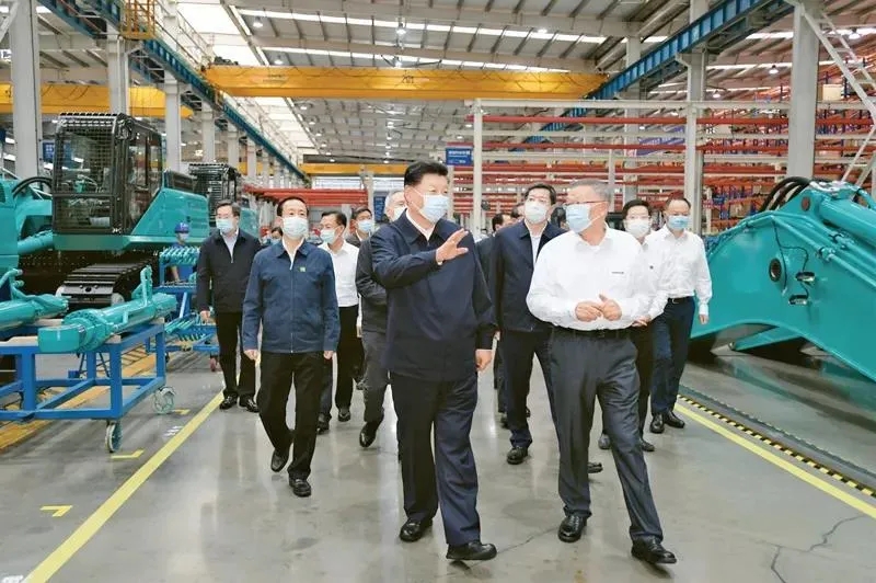 2020年9月16日至18日,中共中央总书记、国家主席、中央军委主席习近平在湖南考察。这是17日下午,习近平在长沙市山河智能装备股份有限公司生产车间,察看装备制造流程,了解技术研发、生产制造情况。