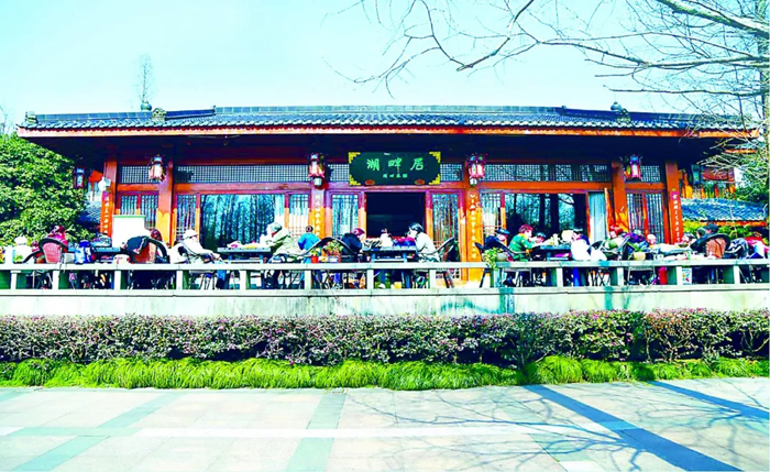 八项规定改变中国。中央八项规定出台后,浙江省杭州市集中开展“会所中的歪风”专项整治,依法依规关停风景区、公园等公共场所内开设的会所等高档经营场所,切实做到“还湖于民、还园于民、还景于民”。图为由高档餐饮经营场所“西湖会”转型改造的“开心茶馆”,不少游客和市民在此喝茶、聊天、赏景。(资料图片)