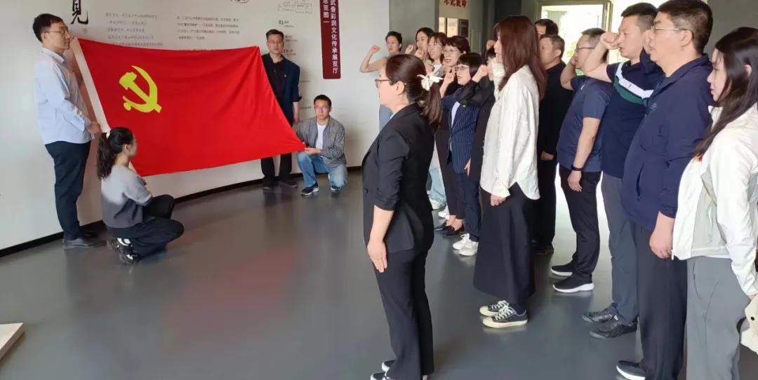 “把细粮留给工人,干部带头吃粗粮、书本上没有先例,我们就创造一个先例、‘铁姑娘’上山……”在叠彩洞文化教育基地,一幅幅照片、一座座雕像深深震撼着大家的心灵。在讲解员的生动解说中,大家为“一斗水村民”在无经验、无技术、无机械的条件下,在悬崖峭壁上开挖盘山隧洞,创下的“中国少有,世界罕见”的工程奇迹而激动振奋、心潮澎湃。而在这个奇迹的背后,是“开拓创新、勇往直前的突破精神,不忘初心、严于律己的廉洁意识,不怕牺牲、坚韧不拔的钢铁意志”的“叠彩洞精神”。随后,大家面对鲜艳的党旗,重温了入党誓词。