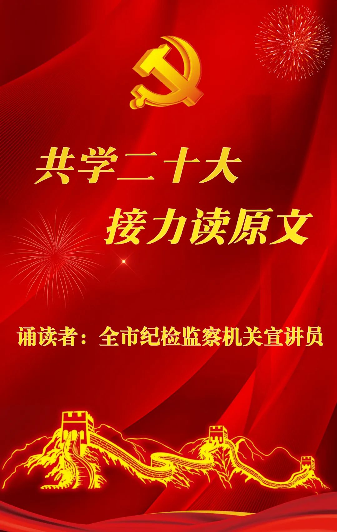 为深入学习宣传贯彻党的二十大精神,切实把全市纪检监察干部的思想统一到党的二十大精神上来,把力量凝聚到党的二十大确定的各项任务上来,即日起,“清风焦作”公众号推出“共学二十大•接力读原文”活动,摘选各单位宣讲员诵读党的二十大报告原文,敬请关注!