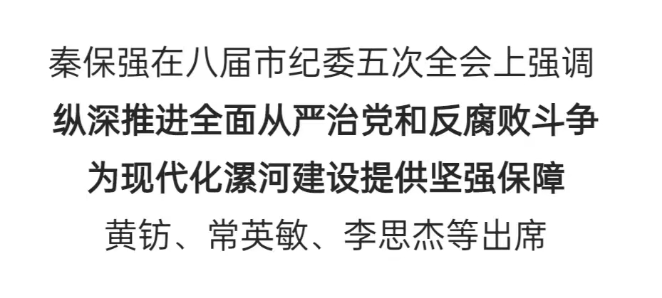 1月24日,八届市纪委五次全会召开,全面贯彻落实党的二十大和二十届二中、三中全会精神,深入学习贯彻二十届中央纪委四次全会特别是习近平总书记重要讲话精神,认真落实十一届省纪委五次全会工作部署,用改革精神和严的标准推动全面从严治党向纵深发展,为现代化漯河建设提供坚强保障。市委书记秦保强出席会议并讲话。黄钫、常英敏、李思杰等出席。