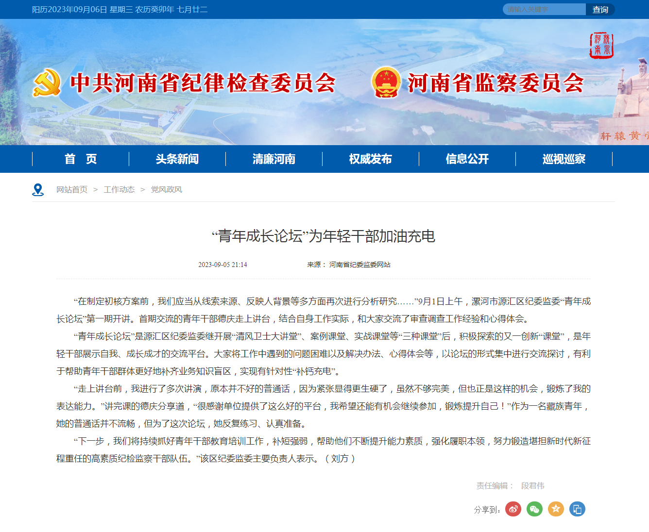 “在制定初核方案前,我们应当从线索来源、反映人背景等多方面再次进行分析研究……”9月1日上午,漯河市源汇区纪委监委“青年成长论坛”第一期开讲。首期交流的青年干部德庆走上讲台,结合自身工作实际,和大家交流了审查调查工作经验和心得体会。