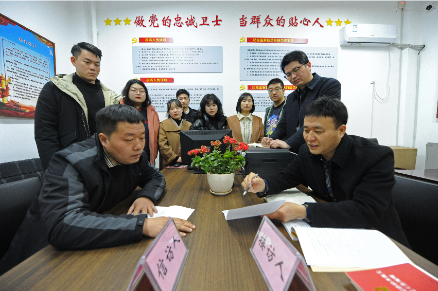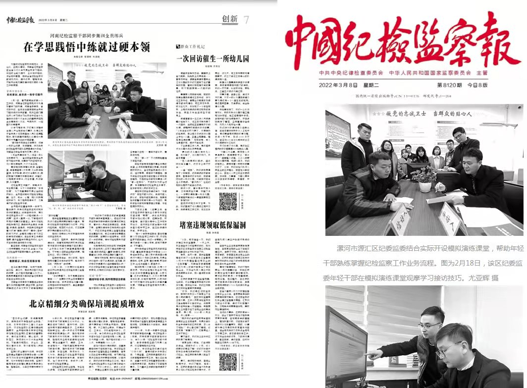(漯河市源汇区纪委监委结合实际开设模拟演练课堂,帮助年轻干部熟练掌握纪检监察工作业务流程。图为2月18日,该区纪委监委年轻干部在模拟演练课堂观摩学习接访技巧。尤亚辉 摄