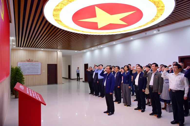 市纪委监委理论学习中心组到市委党校党性教育基地,参观学习“不忘初心、牢记使命”主题教育档案文献展览并重温入党誓词,共同接受思想政治洗礼。