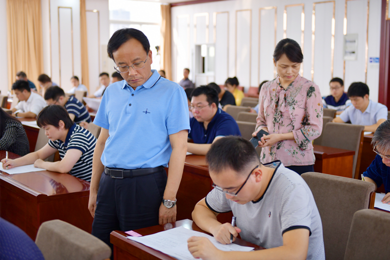 测试坚持组织与出题相分离,现场监考、领导巡考与技术监考相结合等原则,实行闭卷考试,单人单桌,禁止携带手机、资料,测试过程全程录像,市纪委监委纪检监察干部监督室、组织部全程监督。