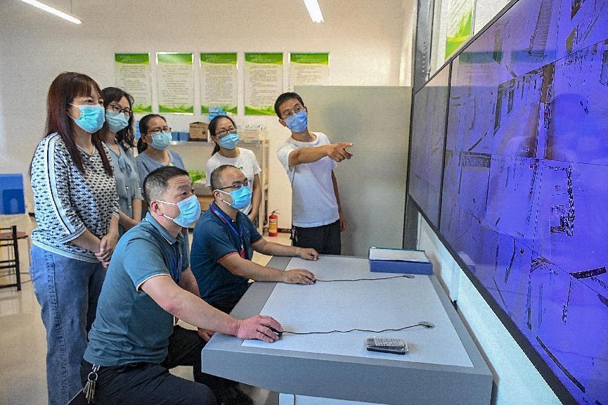 源汇区纪委监委派驻第九纪检监察组通过智慧电子系统监测校园安全措施落实情况。