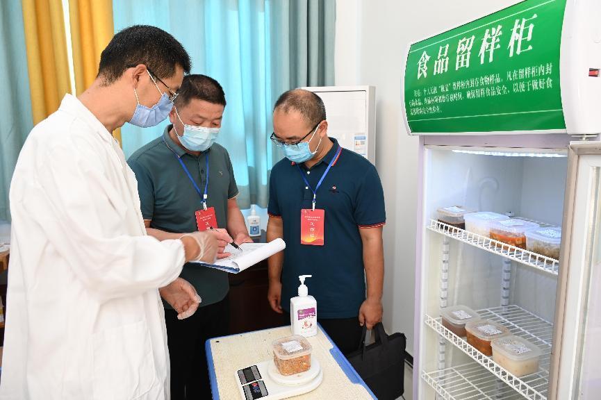 源汇区纪委监委派驻第九纪检监察组监督检查师生配餐留样情况,确保食品安全。