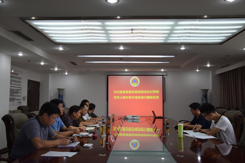 市纪委驻规划局综合纪检监察组8月18、19日利用两天周末休息时间,先后对市城市管理局、市人民防空办公室党组领导班子进行了廉政谈话。会上,班子成员围绕“一岗双责”落实情况、分管工作以及个人的廉政风险点排查和防范措施的制定情况、存在的风险隐患和下步工作改进方向等方面进行了发言。城市管理局党组书记、局长余培仕同志代表党组汇报了今年来城市管理局党风廉政建设工作和以案促改工作,并就全面从严治党作了表态发言。