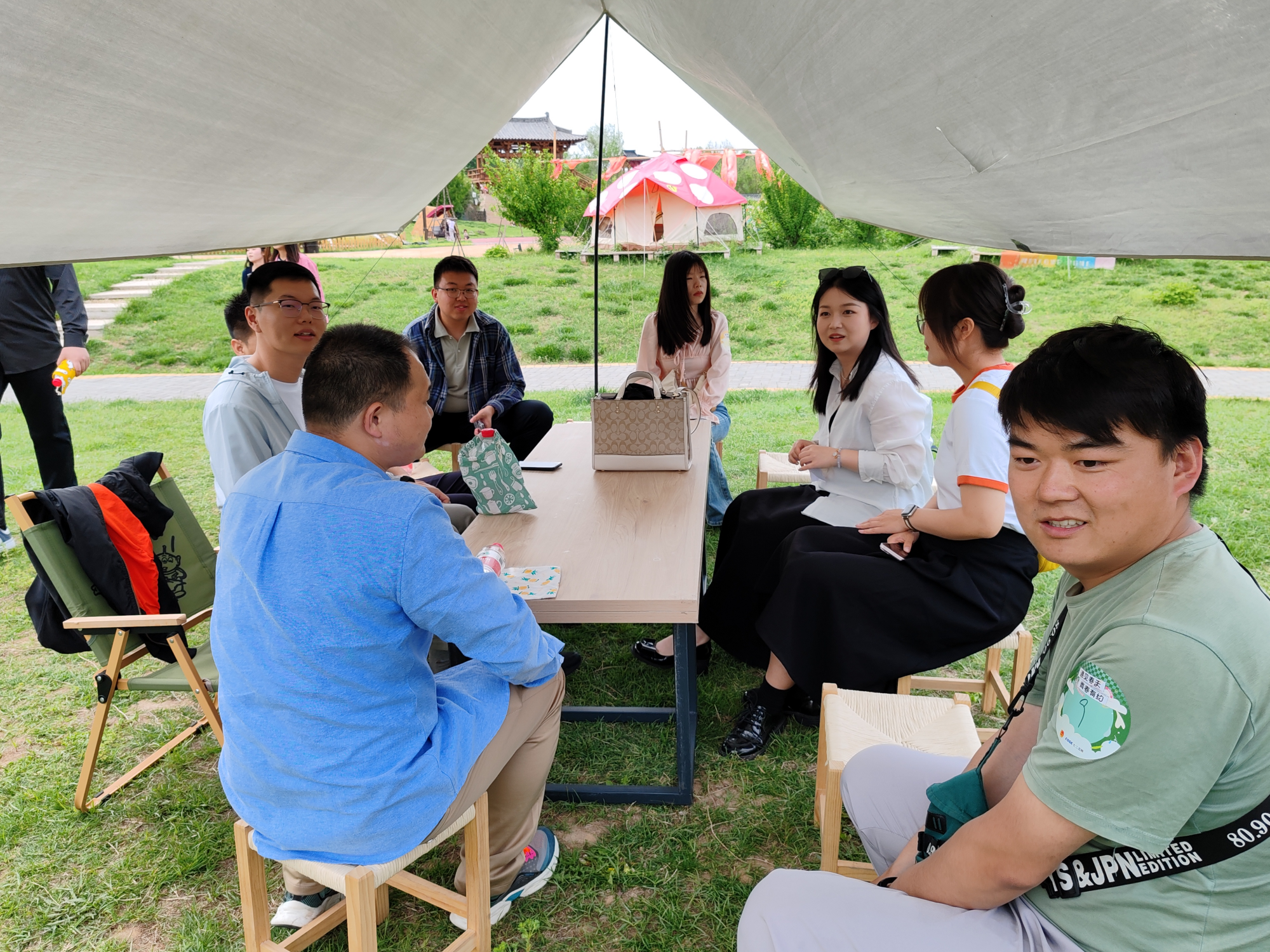 青年嘉宾共分为十组,在各自的野营帐篷内依次坐开,伴着温柔的春风,听着惬意的乐曲。