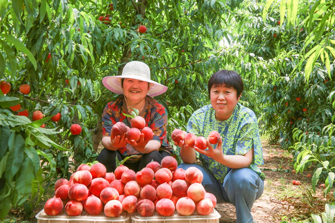 夏至时节,在清丰县双庙乡桃园里,晶莹圆润的胭脂脆桃已经成熟,压弯了枝头,农户正忙着采摘鲜桃,尽享劳动和收获带来的喜悦。(清丰县纪委监委 李荣强 摄)