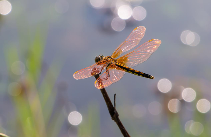 日长篱落无人过,唯有蜻蜓立上头。蜻蜓是夏天的使者,款款身姿悄然停落在枝头上,给夏天增添了一抹浪漫和诗意。(舞钢市纪委监委 安孟辉 摄)