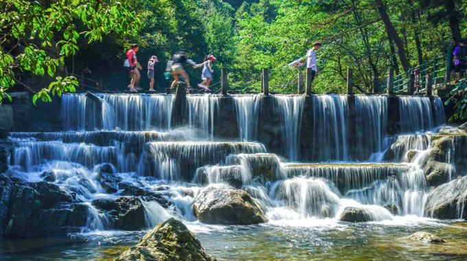 在盛夏的山林间,深浅明暗的绿争相进入眼帘;清凉澄澈的溪水在浓阴中流淌,在石阶处肆意飞洒。人们成群结队趟过潺潺水流,在欢笑中将酷夏的暑气消散一空。(洛阳市涧西区纪委监委 段万卿 摄)