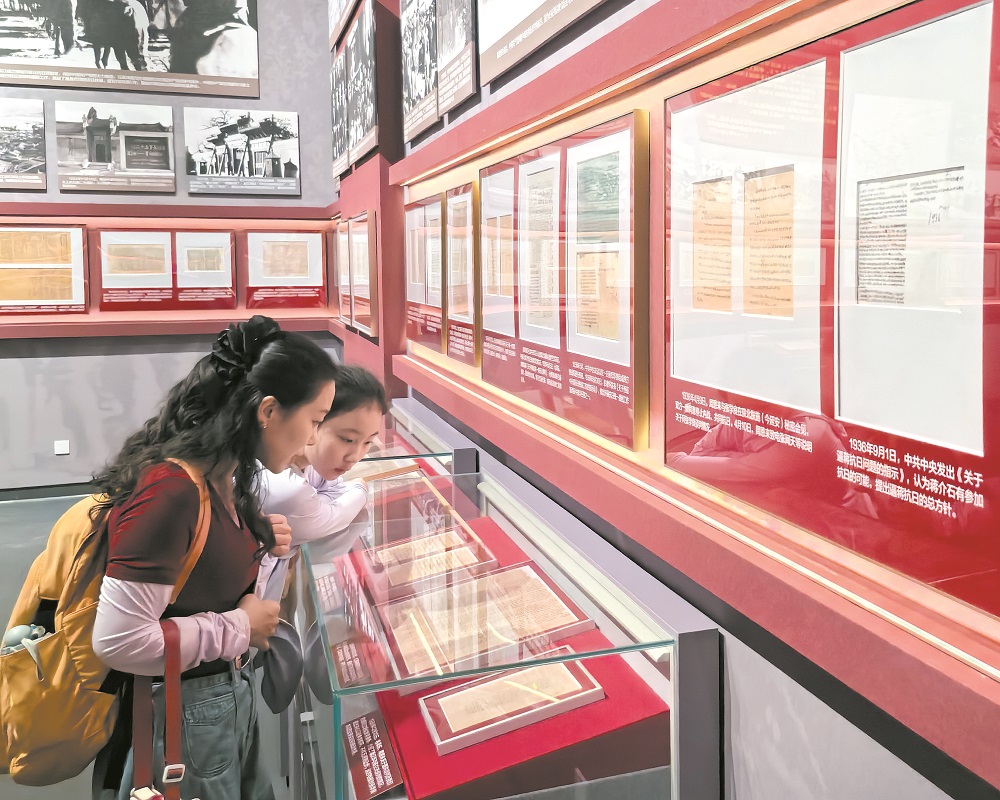 展览穿过岁月、直抵人心,吸引了全国各地的观众。在《中国共产党为日本帝国主义强暴占领东三省事件宣言》的档案前,一位母亲叮嘱身边孩子“‘九一八’这个日子不能忘”;在晋察冀军区百团大战总结报告的资料前,一位中年观众边观察边念叨“打得好”;一对精神矍铄的老年夫妇,在看到《延安总部关于抗日战争期间中国解放区救护盟军人员登记册》的展板时,不由感叹“当年真不容易”。