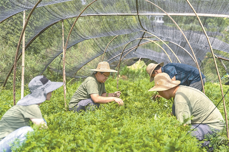近日,在重庆雪宝山国家级自然保护区崖柏繁育科研基地,工作人员为两年生的崖柏幼苗除草。 新华社记者 黄伟 摄
