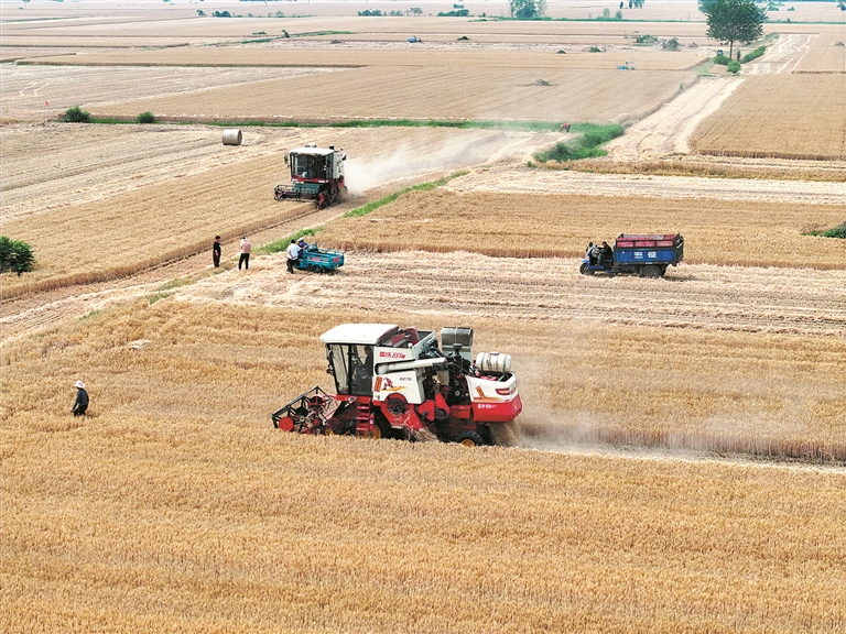 收获的时节,广袤的大地。一块块金黄的麦田,铺展出丰收的画卷,也支撑起中国粮食安全的充足底气。