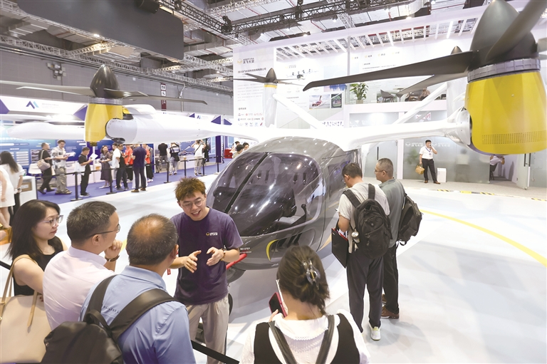 上图:近日,人们在博览会沃飞长空展区了解产品情况。新华社记者 王翔 摄