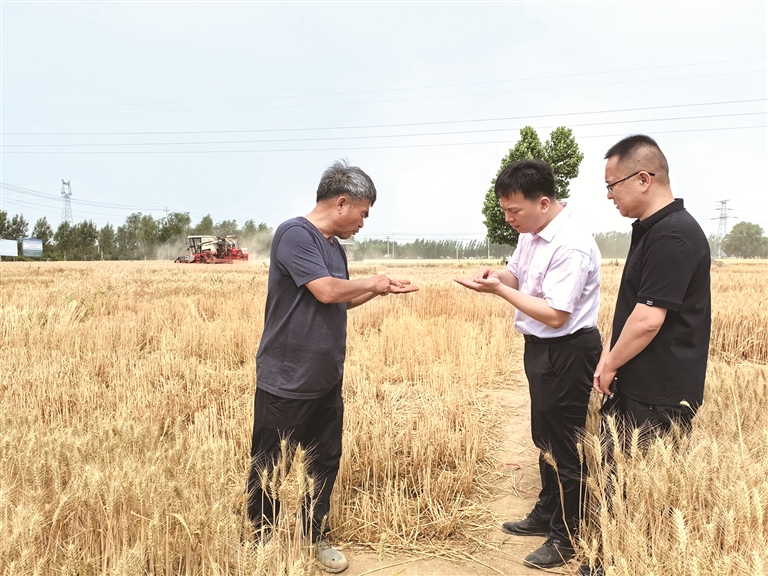 夏收时节,山东省曹县纪委监委下沉力量,深入一线开展监督检查,督促相关职能部门履职尽责,为夏粮丰产丰收保驾护航。图为近日该县纪检监察干部在普连集镇李楼寨村小麦收割现场了解相关情况。中央纪委国家监委网站 吕佳蓉 摄