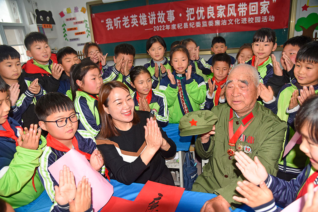 河南省杞县纪委监委通过组织廉洁文化进校园活动在青少年心中播撒廉洁种子。 刘银忠/摄
