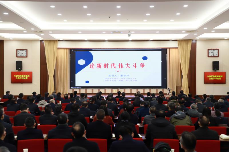 会后,中央党校(国家行政学院)研究室主任郝永平就“论新时代伟大斗争”作辅导报告。