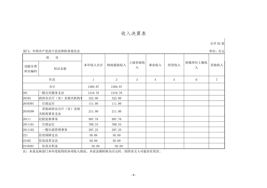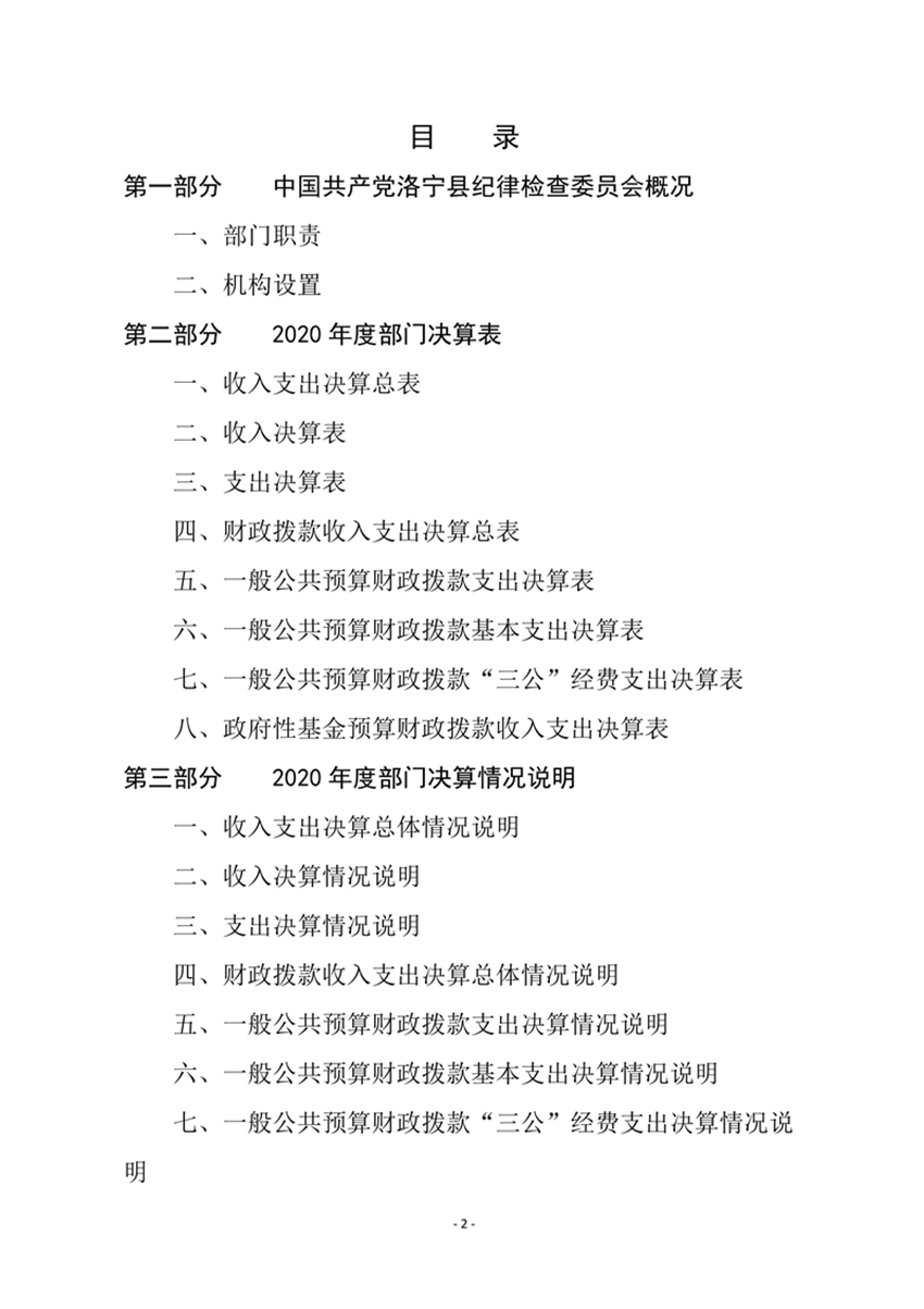 中共洛宁县纪委2020年度部门决算