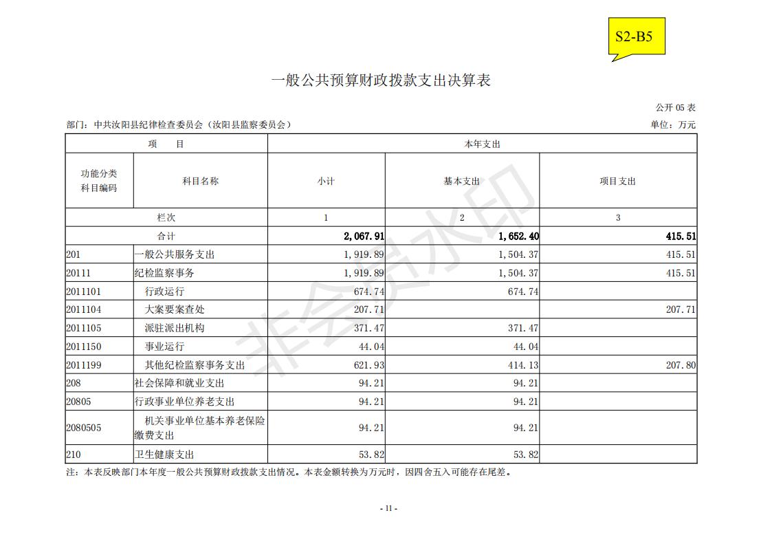 汝阳县纪委监委2020年度决算公开
