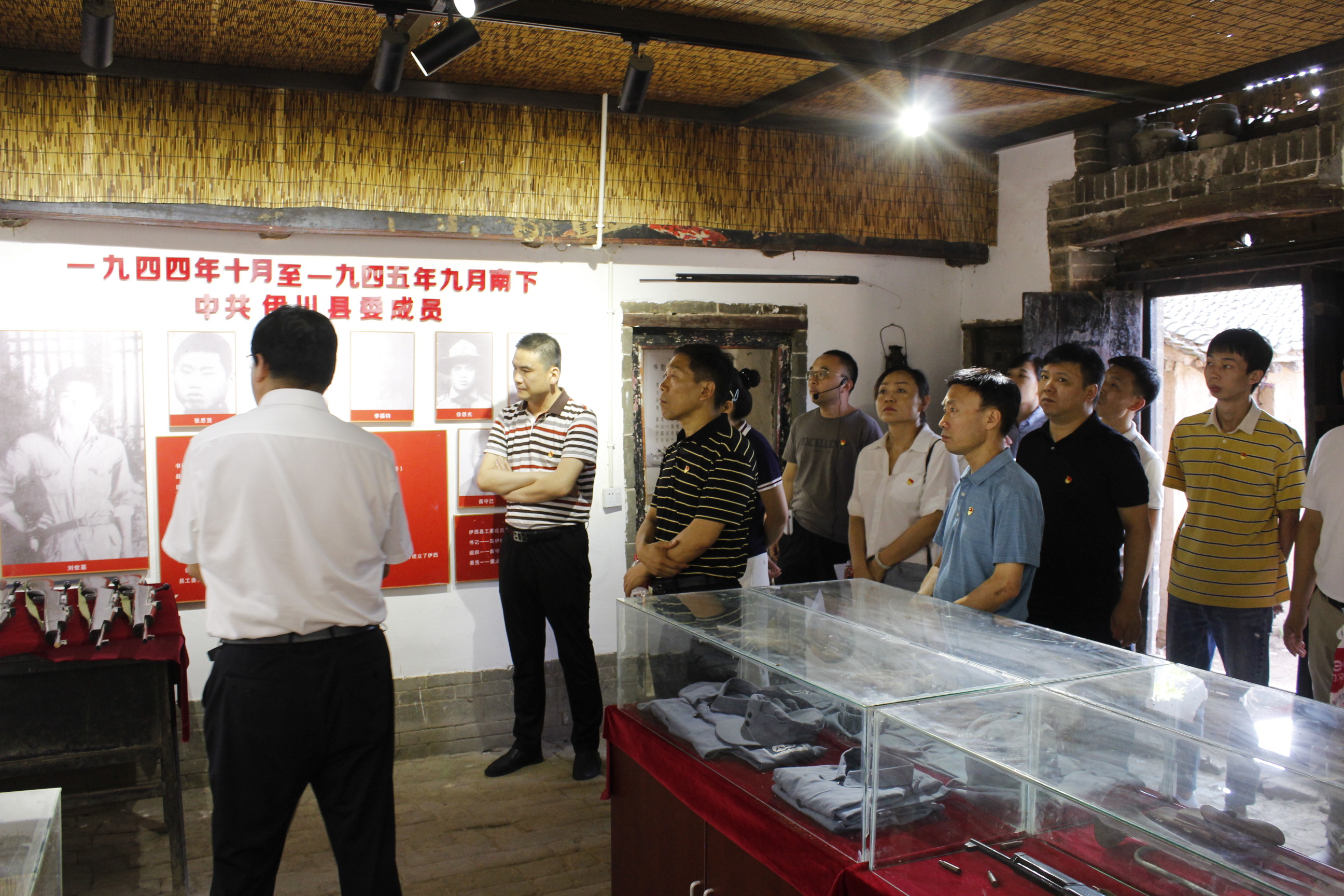在孙村红色教育基地,大家认真聆听了抗战时期伊川县委书记、独立团政委刘世基同志积极抗战并壮烈牺牲的战斗历史,对我党的初心和使命有了更深刻的认识,对“不能忘记走过的路”“不能忘记为什么出发”有了更切身的体会。参观结束后,在场党员干部面对党旗,郑重庄严地重温了入党誓词。