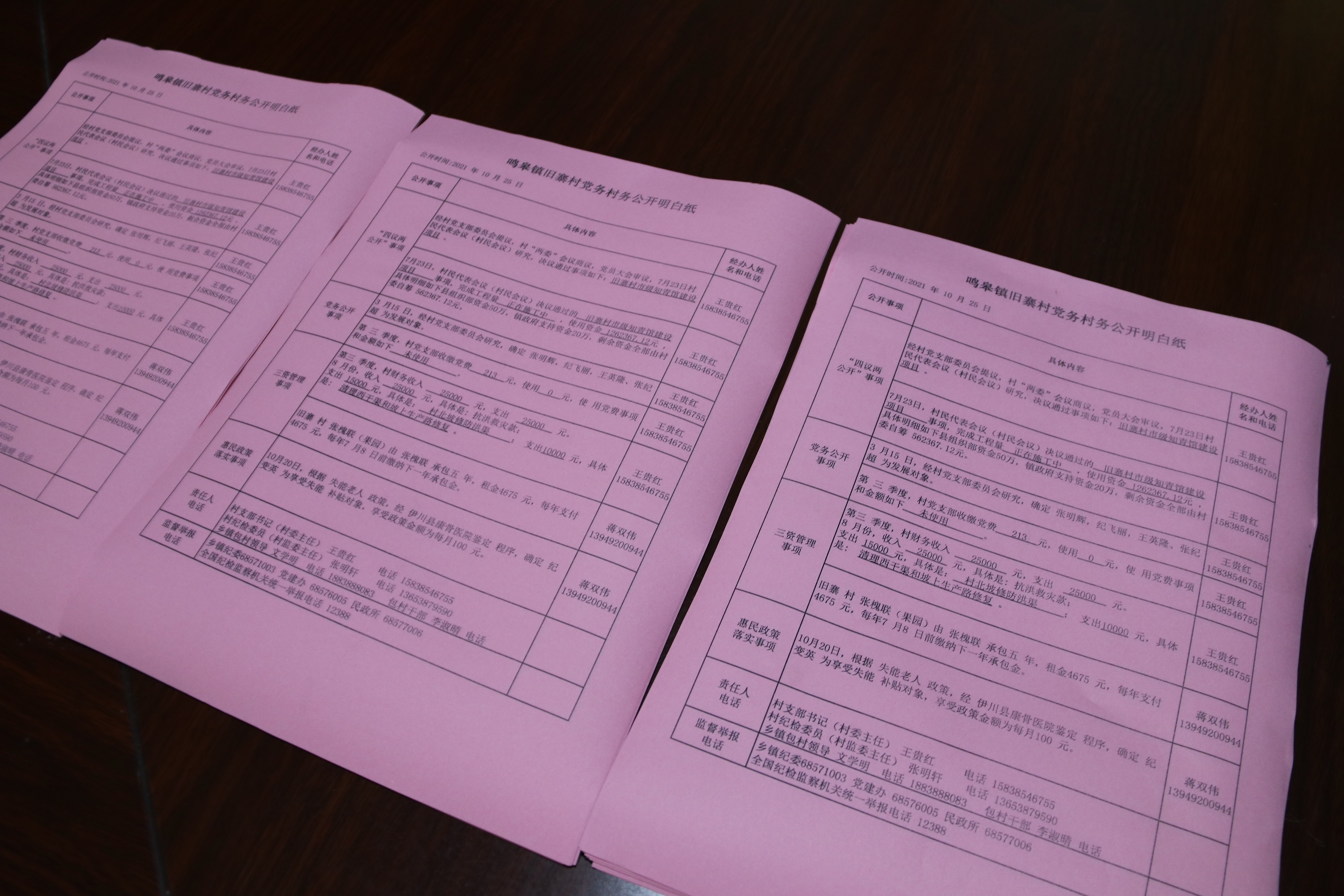 “这是咱村上季度的‘三务’公开明白纸,村里的每笔收支、决策事项都列了出来,大家仔细看看,上面还有监督举报电话……”11月1日一大早,鸣皋镇旧寨村支部书记王贵红便走街串巷,把“明白纸”送到每家每户,并耐心讲解每一条公开事项。