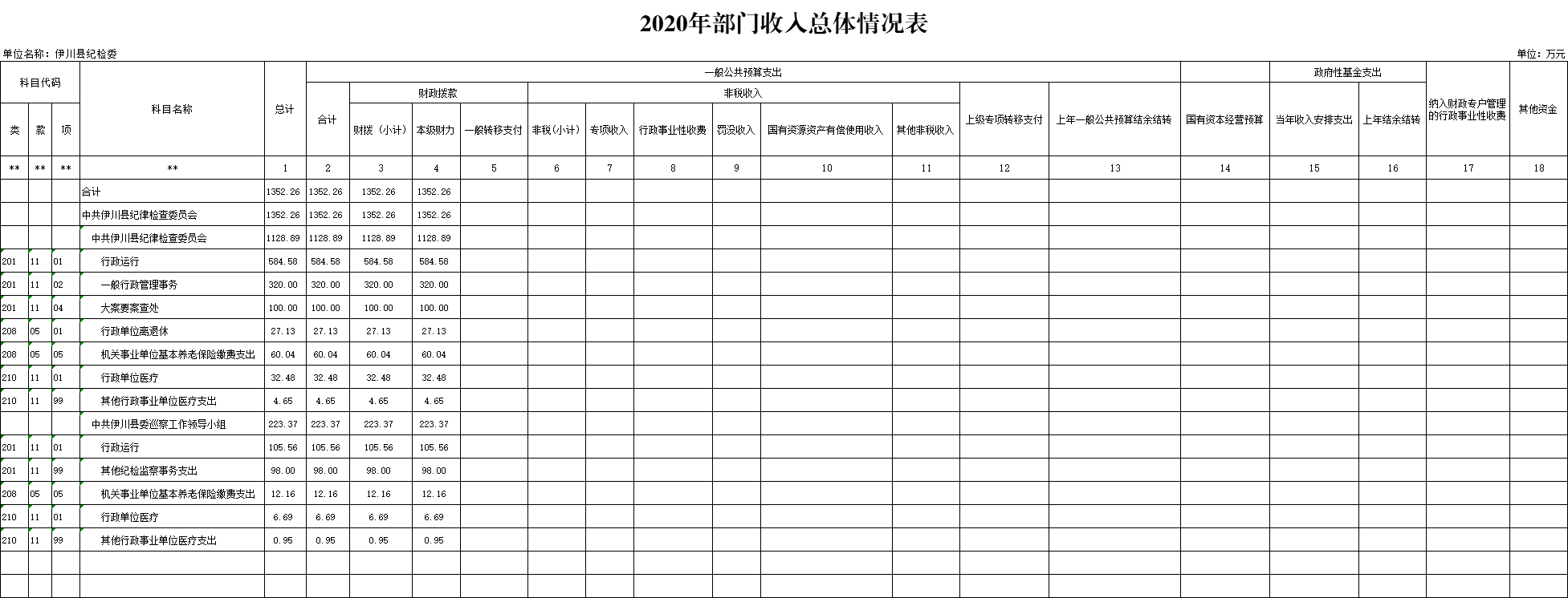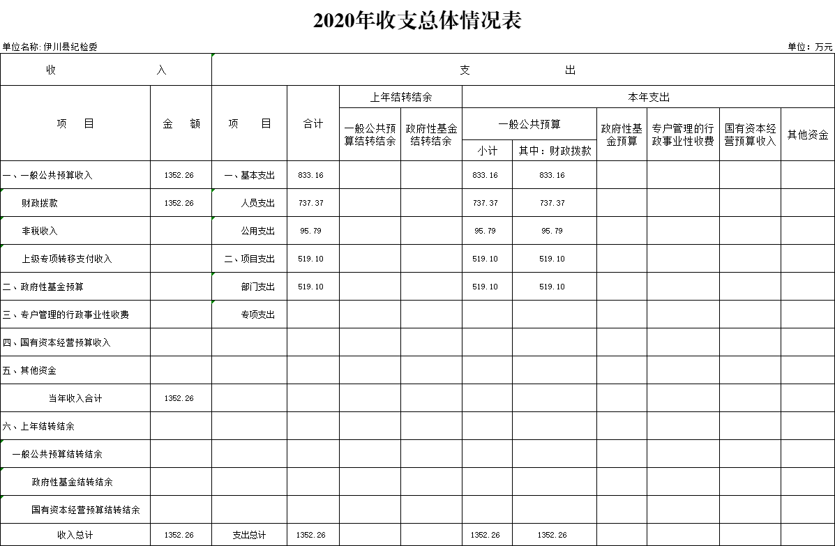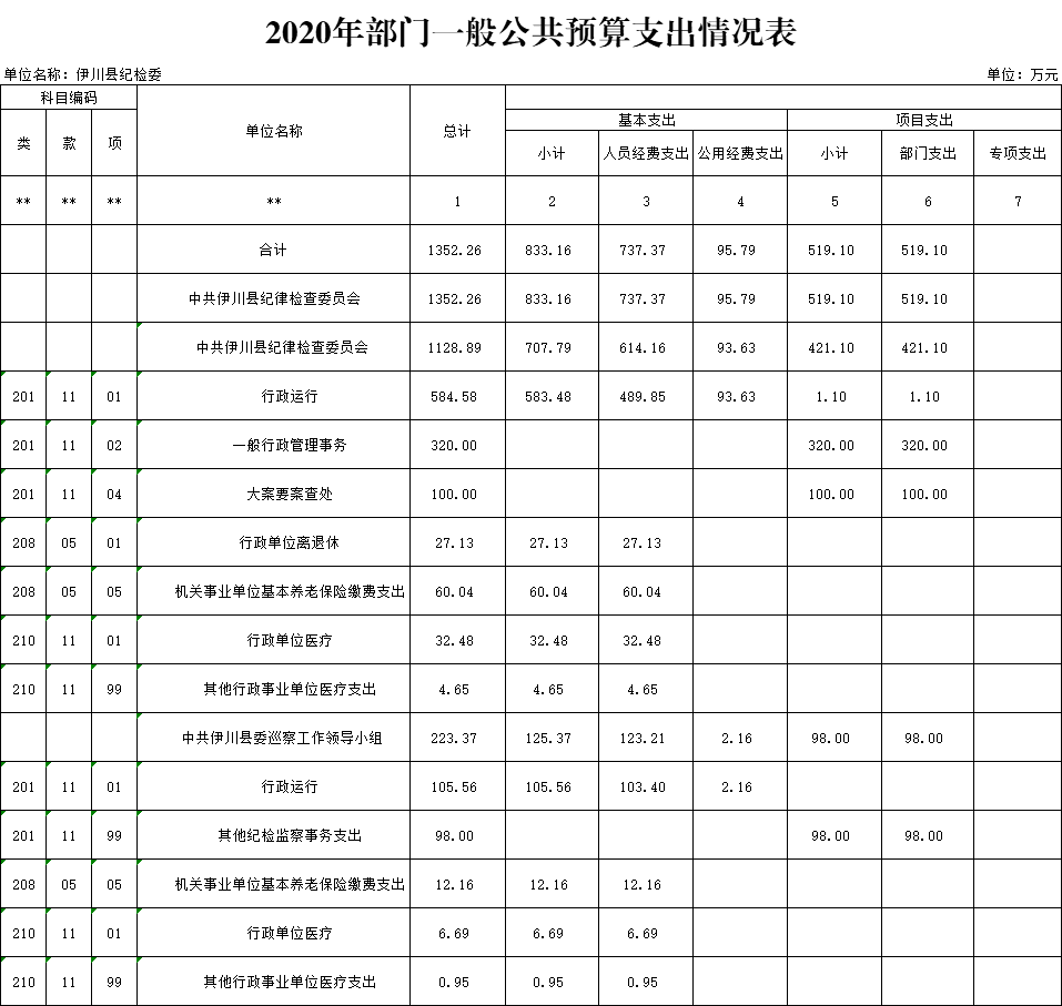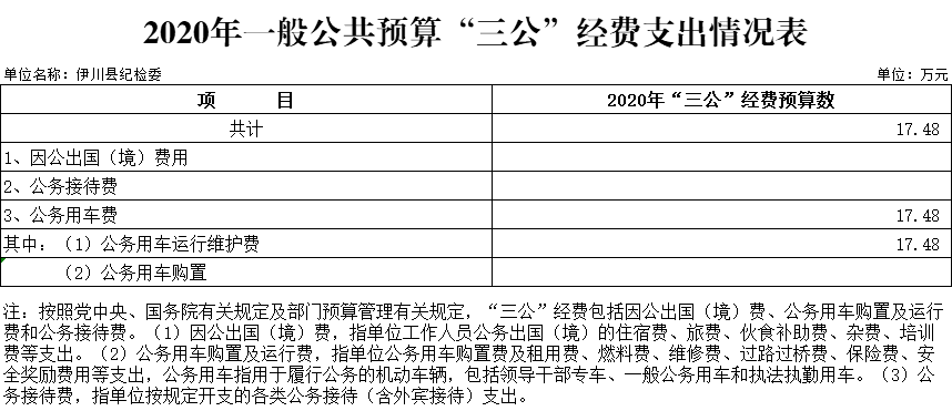 公示公开|中共伊川县纪律检查委员会 2020 年部门预算公开