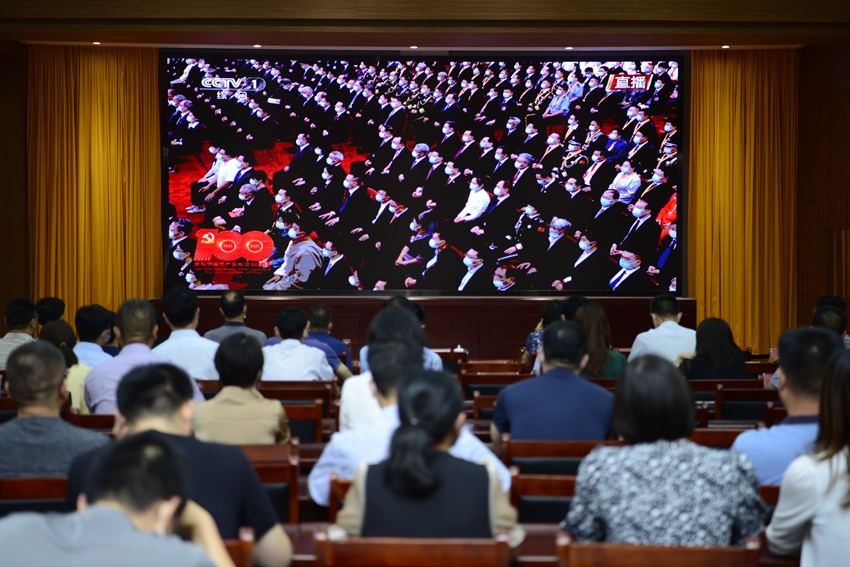 6月29日上午,市纪委监委全体同志在委机关后楼二楼会议室集中收看了中国共产党成立100周年“七一勋章”颁授仪式直播。