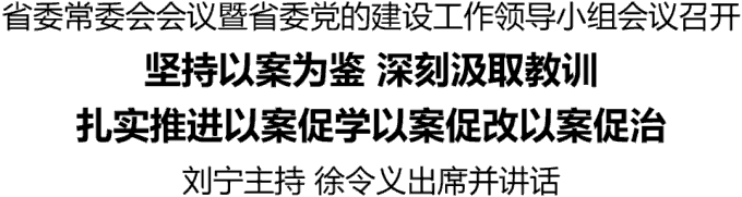 会议强调,我省这起违规吃喝问题,发生在开展深入贯彻中央八项规定精神学习教育之际,是典型的目无法纪、顶风违纪,性质极为严重,影响极为恶劣。全省各级党组织和广大党员干部要切实把思想和行动统一到中央通报精神上来,汲取教训、引以为戒,解剖麻雀、深挖根源,建立制度、以上率下,入脑入心、成为自觉,扎实推进以案促学、以案促改、以案促治,真正把严的基调、严的措施、严的氛围长期坚持下去,以作风建设的实际行动坚定拥护“两个确立”、坚决做到“两个维护”。