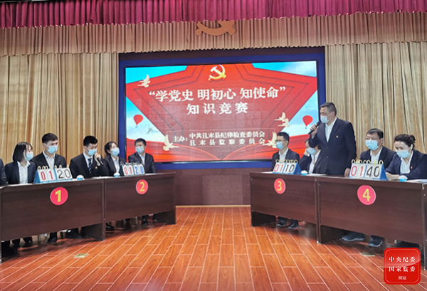 新疆维吾尔自治区巴州且末县纪委监委开展学党史明初心知使命知识竞赛,竞赛内容涵盖党建基础知识、党史、支部工作条例等内容。(新疆维吾尔自治区巴州且末县纪委监委供 季解放 摄)