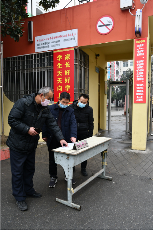 淅川县纪委监委围绕常态化精准防控,紧盯各中小学校进出人员体温检测、登记、临时观察区、教室、医务室、公共区域日常消毒、学生管理、应急处置和物资储备等,加强监督检查,确保各项防控措施落实。图为派驻教体局纪检监察组在县一初中察看学生体温监测、进出人员登记等情况。(淅川县纪委监委 宋莹莹 摄)