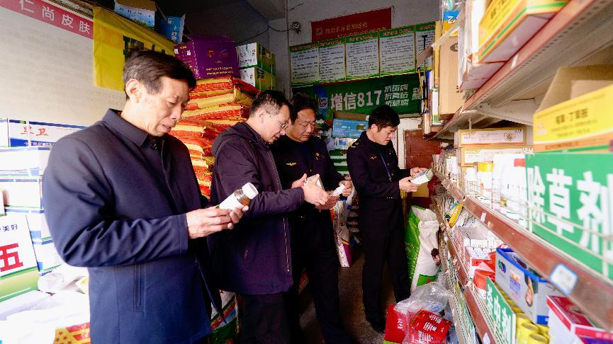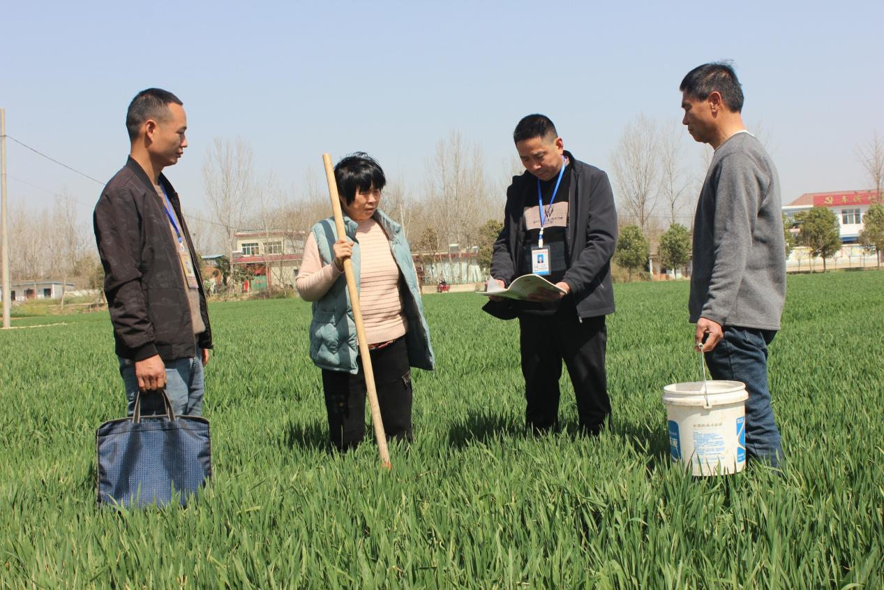 新野县纪委监委组织纪检监察干部到田间地头开展一线监督,压紧压实农资、市场监督、发改等部门的主体责任,以精准监督推动解决群众急难愁盼问题,护航春耕生产。图为新野县纪检监察干部到沙堰镇车湾村麦田了解农资价格、干部作风等情况。(王宽德 摄)