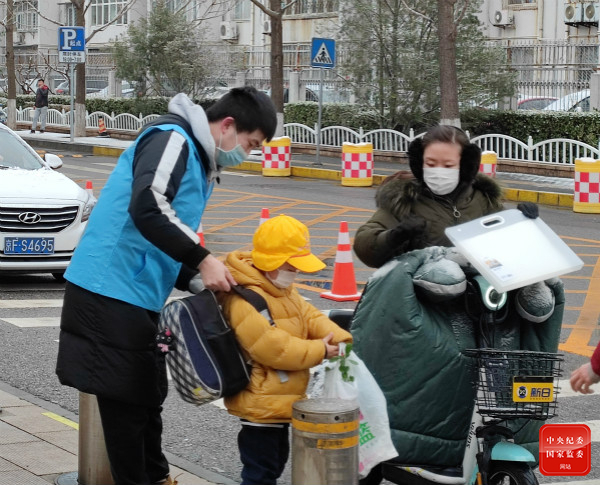 为大力弘扬雷锋精神和志愿服务精神,北京市海淀区上地街道于近期组织开展“爱满京城”学雷锋志愿服务系列活动之“护童”志愿服务行动。图为3月1日早上,志愿者服务队来到上地实验学校,在开学第一天协助开展文明引导,维护周边秩序。(北京市海淀区纪委监委供 梁震宇 摄)