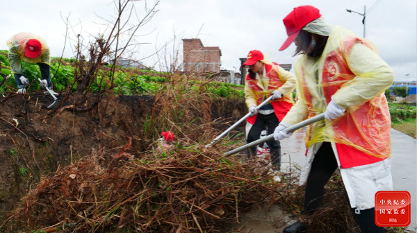 连日来,广西壮族自治区忻城县组织志愿者成立学雷锋志愿服务队,开展服务“三农”忙春耕活动,践行雷锋精神,为巩固脱贫攻坚成果与乡村振兴有效衔接贡献力量。图为志愿者服务队清除堵塞农田水利的枯枝败草。(广西壮族自治区忻城县纪委监委供 樊世平 摄)