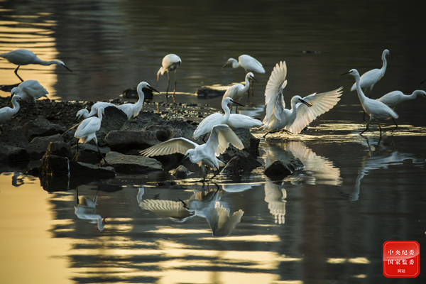 随着气温回升,在浙江省金华市婺城区琅琊镇,一群白鹭正在白沙溪畔的湿地里觅食。婺城区近年来践行“环保优先”的低碳发展理念,生态环境持续向好,为候鸟提供了更宜居的环境,成为远近闻名的观鸟胜地,湿地旅游热度逐渐走高。(浙江省金华市婺城区纪委监委供 王杰 摄)