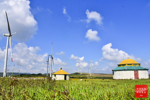 中广核贵州龙里风力发电场自2012年投产以来,累计上网电量41.2亿千瓦时,相当于减少标准煤耗约150万吨,减少二氧化碳温室气体排放约540万吨。风机与青山绿水呼应,成为龙里大草原上一道亮丽风景,吸引着八方游客。(贵州省龙里县纪委监委供 罗显琴 摄)